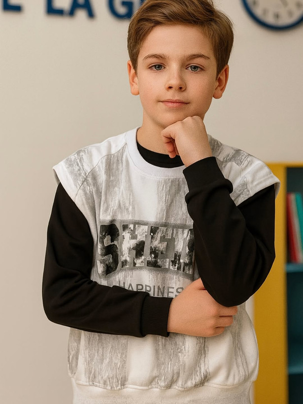 ست دوتکه پسرانه شامل بلوز و جیله است که هر دو بخش قابل استفاده بهصورت جداگانه هم هستن. پارچه: دورس خارجی درجه یک. مناسب برای ۱۴ سال.